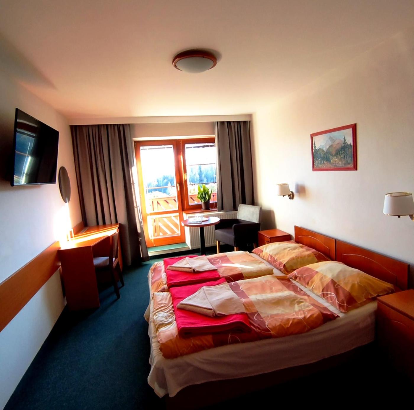 Double Room with Private Bathroom. This room comes with a private bathroom with shower and toilet. It features a seating area and a TV. Some rooms have a balcony and some come with a view to the Slavkovsky Peak, subject to availability. ;